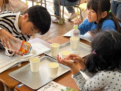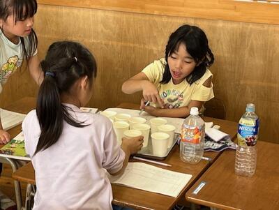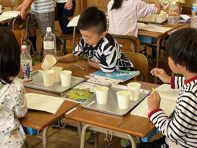 紙コップに水をついで、その差に気づいていく学びでした。