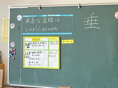 4年生の算数の授業。今日のめては「垂直な直線はどのようにかくのかな】でした。