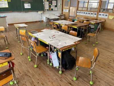 地震の揺れは1分ちょっと続くという想定でしたが、子供たちは静かにこの間机の下で身を隠していました。