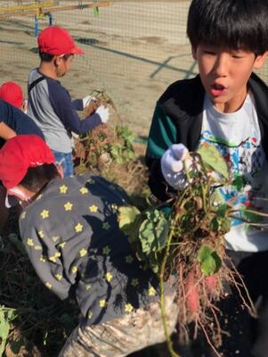 掘ったぞぉ~獲ったぞぉ~ 3年生がサツマイモ収穫