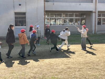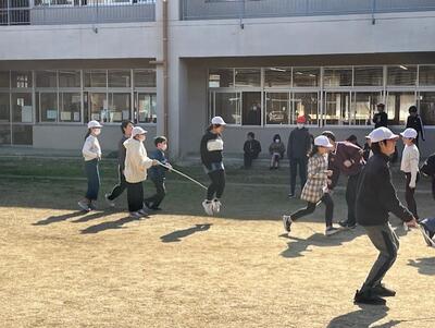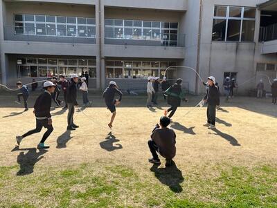 先日の「大なわ大会」低・中学年の部に続き、今日は高学年の部が中庭で行われました。