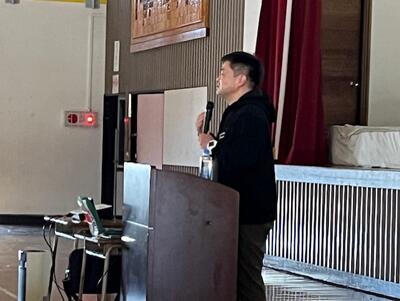 この方が、本日の教育講演会の講師、坂口明夫さんです。