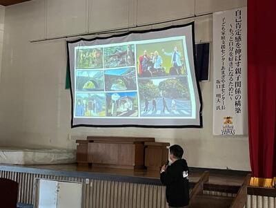 甘木山学園のセンター長など多くの肩書きを持っておられますが、今回は「自己肯定感を伸ばす親子関係の構築について~もっと自分を好きになるために~」というテーマで、保護者及び5,6年生に向けたお話しでした。