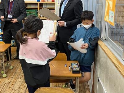 初任者の研究授業が行われました。道徳「あいさつがきらいな王さま」という教材で、あいさつの良さについて子供たちはお互いの考えを出し合い、交流していきました。