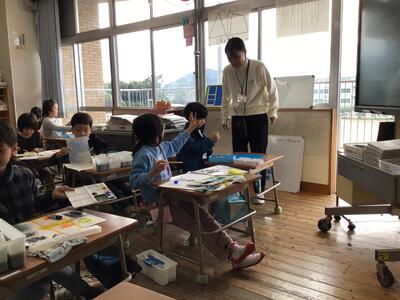 新しい先生に万田小の子供たちは大喜び。他学年の子供たちも坂井先生に会いに行く姿が見られました。