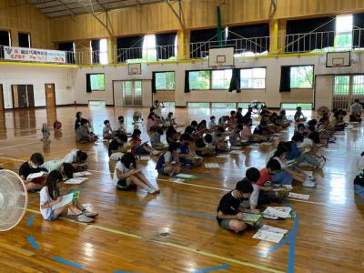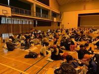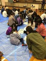 楽しみなお弁当タイムは、あいにくの雨…町の体育館を借りて雨はしのげたものの、ちょっぴりさみしい感じになりました。