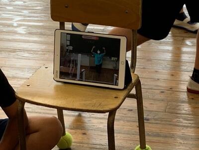 タブレットに配信された踊りの動画を見ながら、自分たちで自主的に練習をしている姿が見られました。