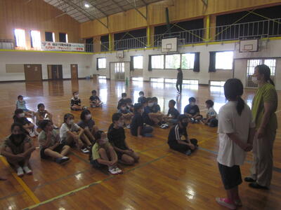 体育館では、みんなでドッジボールを楽しみ、お別れ会を行いました。