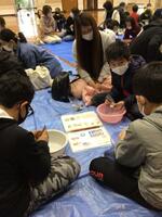 子供たちは、黙々と石を削り、磨き上げて世界に1個だけのオリジナル勾玉ができあがると、大喜び!素晴らしい体験ができました。