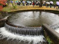 あいにくの天候で、最初の目的地「円形分水」では、じっくり観察することができず、残念でした。