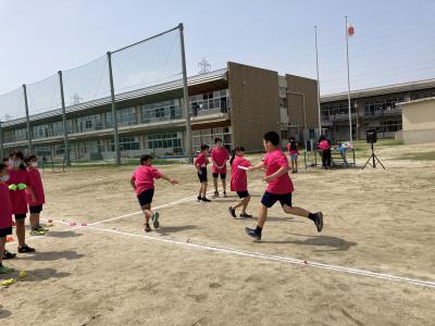 今週で万田小学校を転出する友だちとの思い出づくりのため、5年生全員でミニ運動会を開催するとのこと。