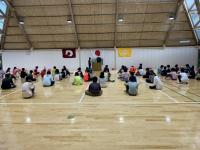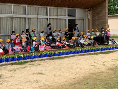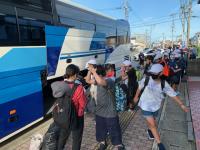 今日から1泊2日の集団宿泊教室です。早朝にもかかわらず、多くの保護者職員に見守られる中、子供たち主体の出発式が行われました。
