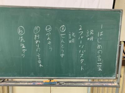 最初は、各自持ち込んだイスを使って「フルーツバスケット」