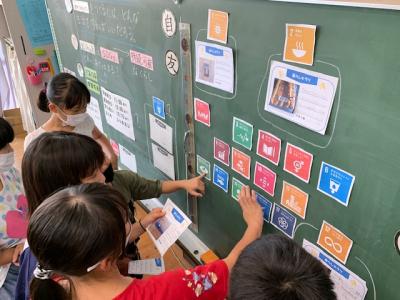 今日の4時間目は家庭科の研究授業がありました。「持続可能なくらしへ 物やお金の使い方」という単元ですが、子供たちは、最近世界的にも注目を浴びている”SDGs”の視点で自分たちにできることを分類していきました。なかなか難しい点もありましたが、これから先の環境を考えていくときには重要な視点となります。これからの他の教科でも生かされるのではないでしょうか。