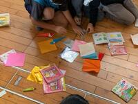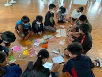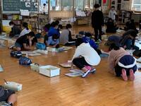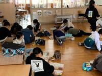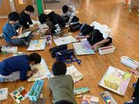 5年生前のフロア(北校舎2階)には、ずらりと5年生が集結して作業を行っていました。