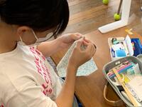 子供たちにとって、針に糸を通すだけでもひと苦労!また「玉結び」や「玉留め」といった指先を使った細かな動きそのものの経験が少ないのも事実。