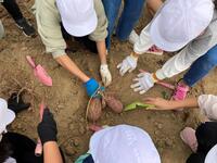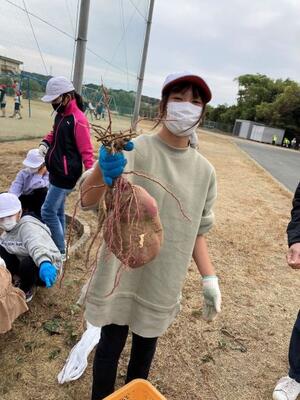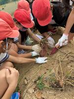 職員室前の学年園には、初夏の頃に植えたサツマイモが育っていました。