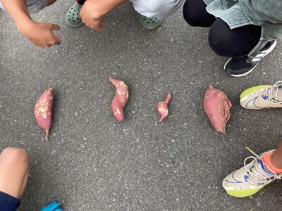 今日は、満を持して収穫の日でした。2クラス対抗でクラスマッチ(総重量対決)や重量対決(個人戦)、オモシロ形状対決(個人戦)を行うなど、遊び心満載の大会となりました。