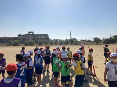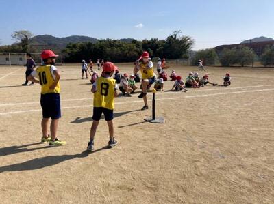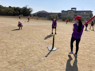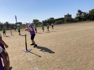 現在、体育の授業では、ベースボール型ゲームとして「ティーボール」に取り組んでいます。