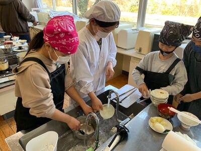 全ての調理を一人で行うには、ごはんづくりやみそ汁づくりが非常に難しいことから、これらはグループで作業を行わざるを得ませんでした。