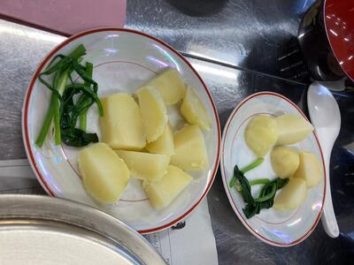 5年生は「ごはん」「みそ汁」に加えて、テーマが”ゆでる”です。『じゃがいも』『卵』『ほうれんそう』の3つをゆでて調理します。