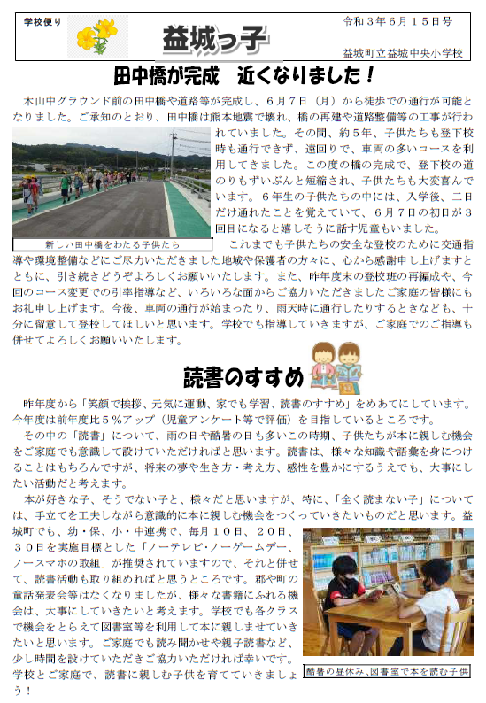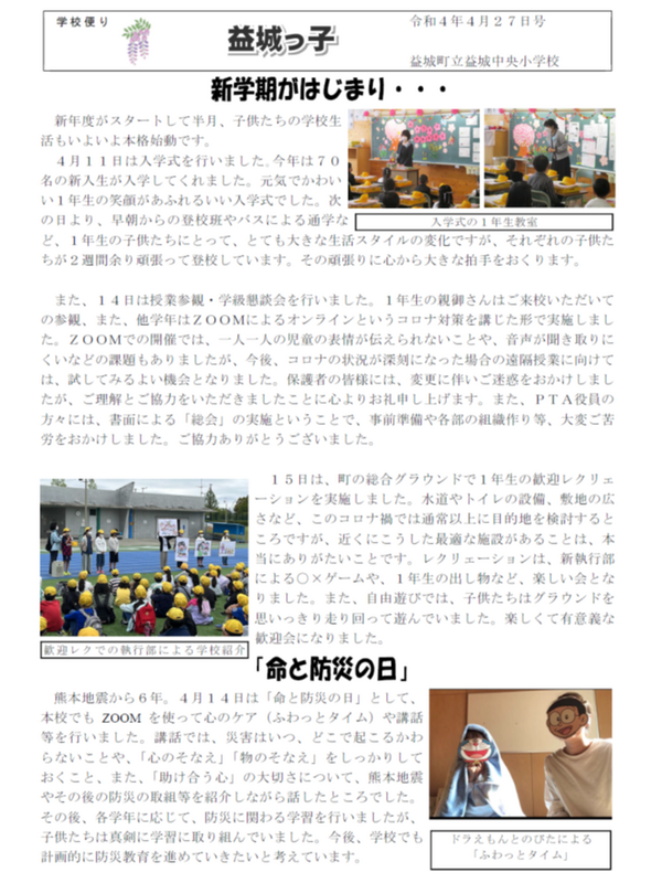 「学校便り 4月27日号」を発行しました。本校HP「学校のおたより」からご覧ください。