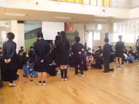 10月16日(木)から、後期がスタートし、25日(土)の運動会に向けて、練習を頑張っています。写真は、各団の団結式の様子です。今年は、赤・白・青の3団で様々な競技を競います。