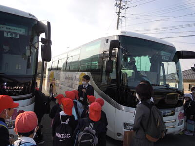 6年生に引き続き、1年生が「見学旅行」で、宇城市学校給食センター及び熊本市動植物園に出発しました。大型バスに乗って、ワクワクの集団行動です。みんな、しっかり学んで、たくさん楽しんでくることでしょう。