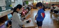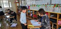 昼休みが終わった業間の時間を使って週に1度のうきうきタイムも行われました。下学年には、学習ボランティアの皆様が〇付けを手伝ってくださいます。学校長もいろいろなクラスに入り〇付けをしてくださっています。ボランティアの方の、「はい、全問正解!」という声かけに、「やったー」という子どもの声が聞こえてきました。地域の方々のサポート体制に感謝申し上げます。