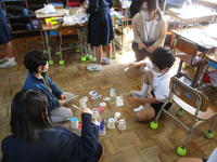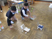 今日は、同級生の2年3組の教室に来てくれて、一緒に生活科の学習に取り組みました。内容は「うごくうごくわたしのおもちゃ」でした。たくさん工夫して、動くおもちゃを一緒に作って、一緒に動かして、なかよくたのしく学習しました。