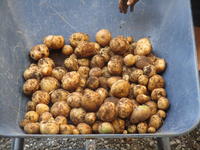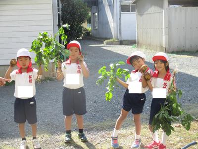 昼下がり、1年生がじゃがいもほりをしていました。まんまるなじゃがいもさんがたくさんとれて、うれしそうな1年生でした。