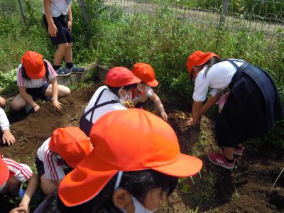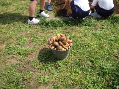 本日、学校評議員の丘様を講師にお招きし、2年生がじゃがいも掘り体験に取り組みました。みんなで協力して、バケツいっぱいのじゃがいもを掘っていました。とてもいい体験ができました。