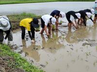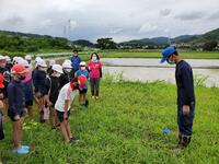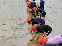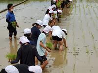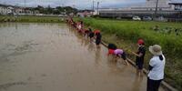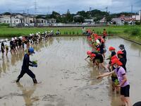 7/14(木)の午後、4Hクラブや宇城市役所の方々の御指導のもと、5年生が田植えを行いました。