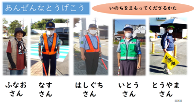 たくさんの交通ボランティアの方が、松小の子供たちの安全のために頑張っています。