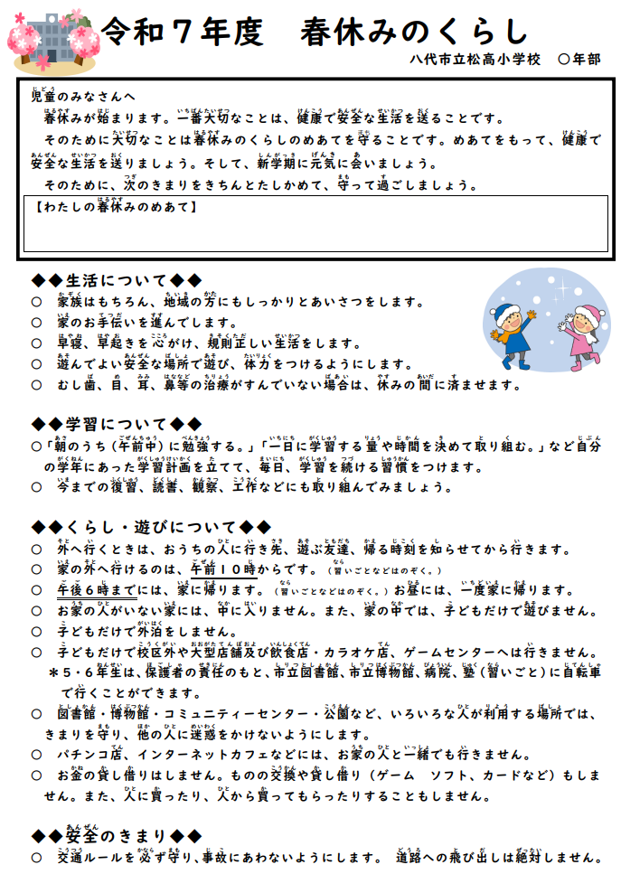 ★「学校評価」に、「R7(後期)保護者アンケート集計結果」をアップしました! 3/16(月)