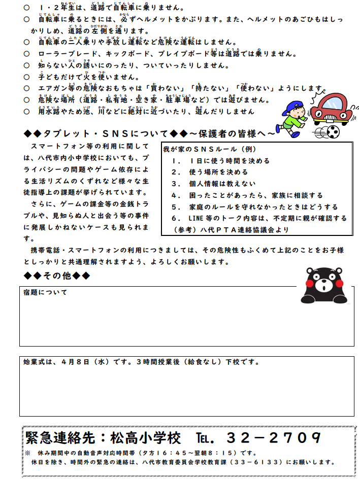 さて、職員と直接お話しされたいために学校への電話連絡を8:00以降していただくケースがございますが、電話が込み合っていることと、職員が教室等へ出向いておりその時間帯に対応できないケースが多くなっていることから、次のようにお願いします。