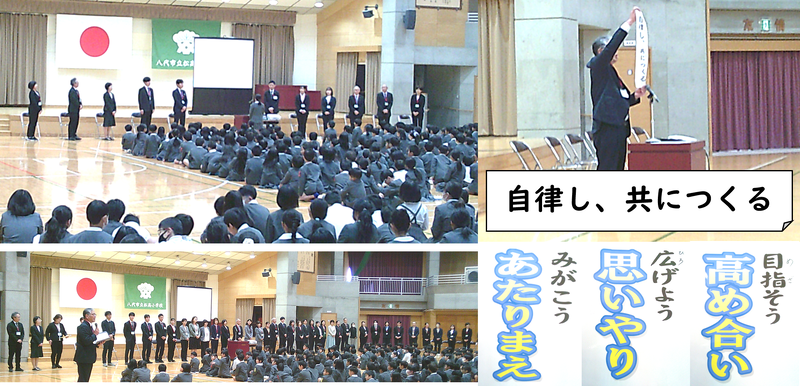 その後、「令和7年度やつしろの笑顔・未来を創る児童生徒表彰」に入賞した「6名」が紹介され、賞状が渡されました。大変素晴らしいことです。全校に大きな拍手が響いていました。