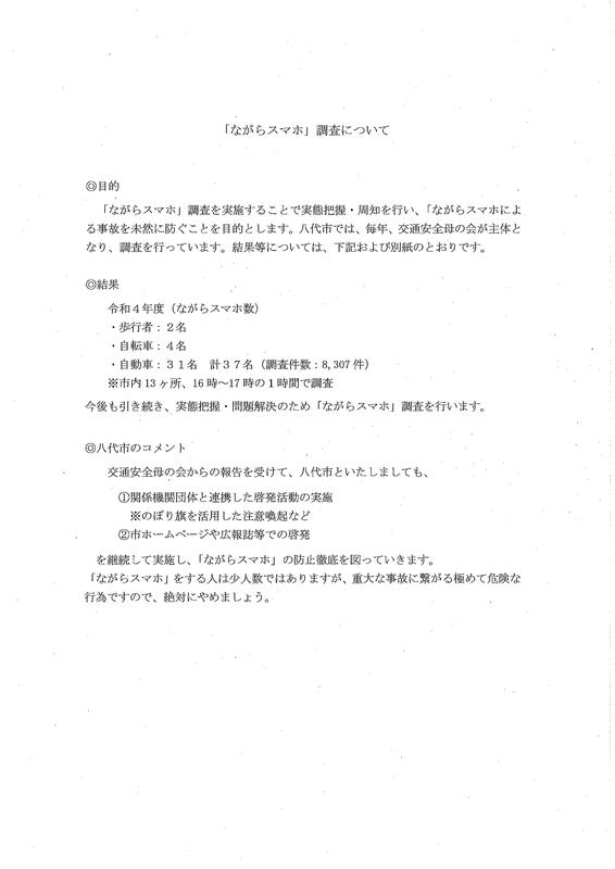 「ながらスマホ」調査について