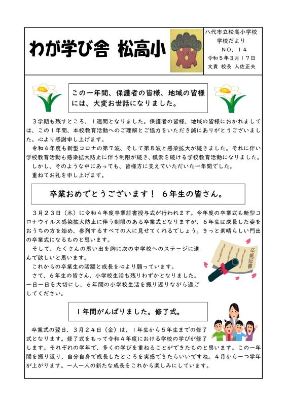 R4学校通信「 わが学び舎 松高小」第14号