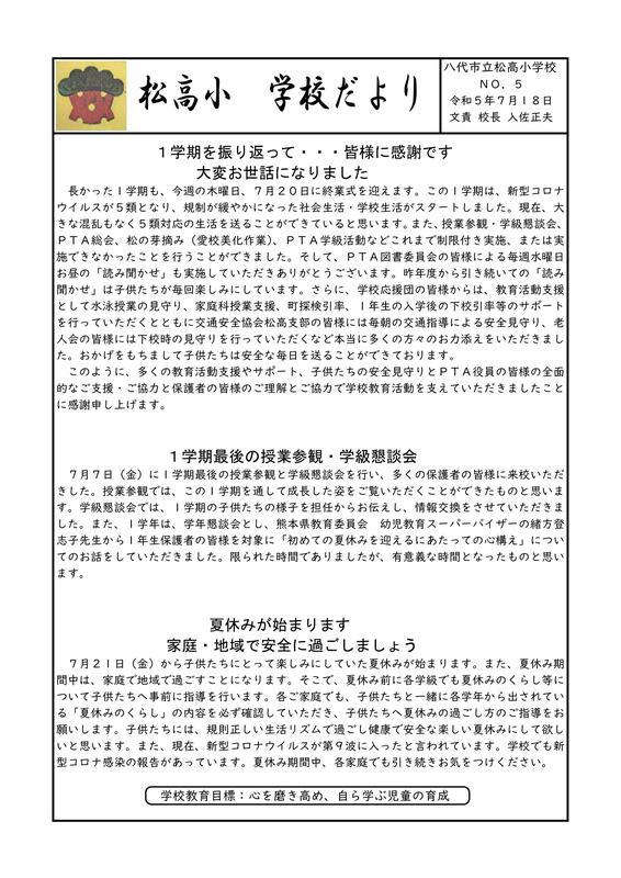 令和5年学校だよりNO.5