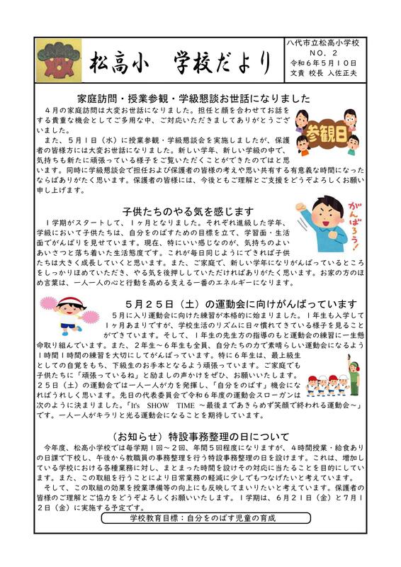 令和6年度学校だよりNO.2