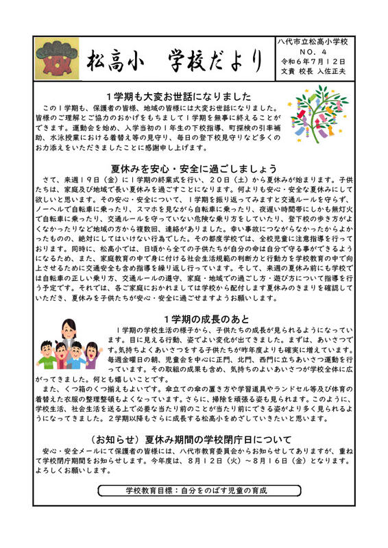 令和6年度学校だより No.6