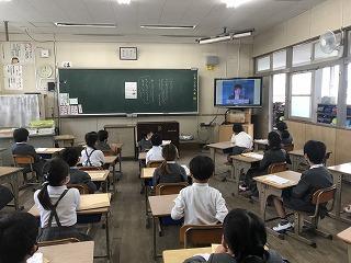 インフルエンザ流行のため、各クラスで動画を流しながらの学習でした。