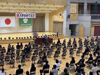 校長先生のお話をしっかり聞く一年生の姿が見られました。