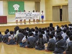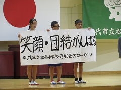 今年度の児童会のテーマと、運動会のスローガンが発表されました。