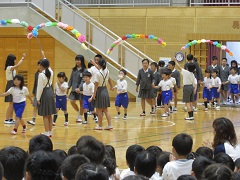あいにくの雨のため体育館でお見知り集会が行われました。
