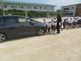 そして、実際の道路を想定してグラウンドでの実技を行いました。