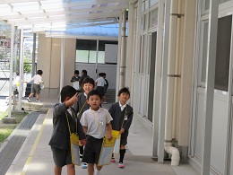 今日は1・2年生が生活科の学習で学校探検をしました。