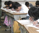 はじめに体育館で講師の方からお話があり、その後、各教室で点訳ボランティア虹の会の方に点字の作成の仕方を教えていただきました。