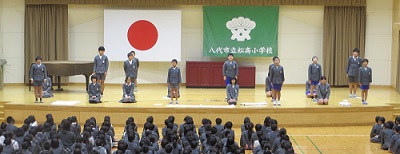 松高小学校は昭和小学校、郡築小学校と合同でステージ発表をしました。